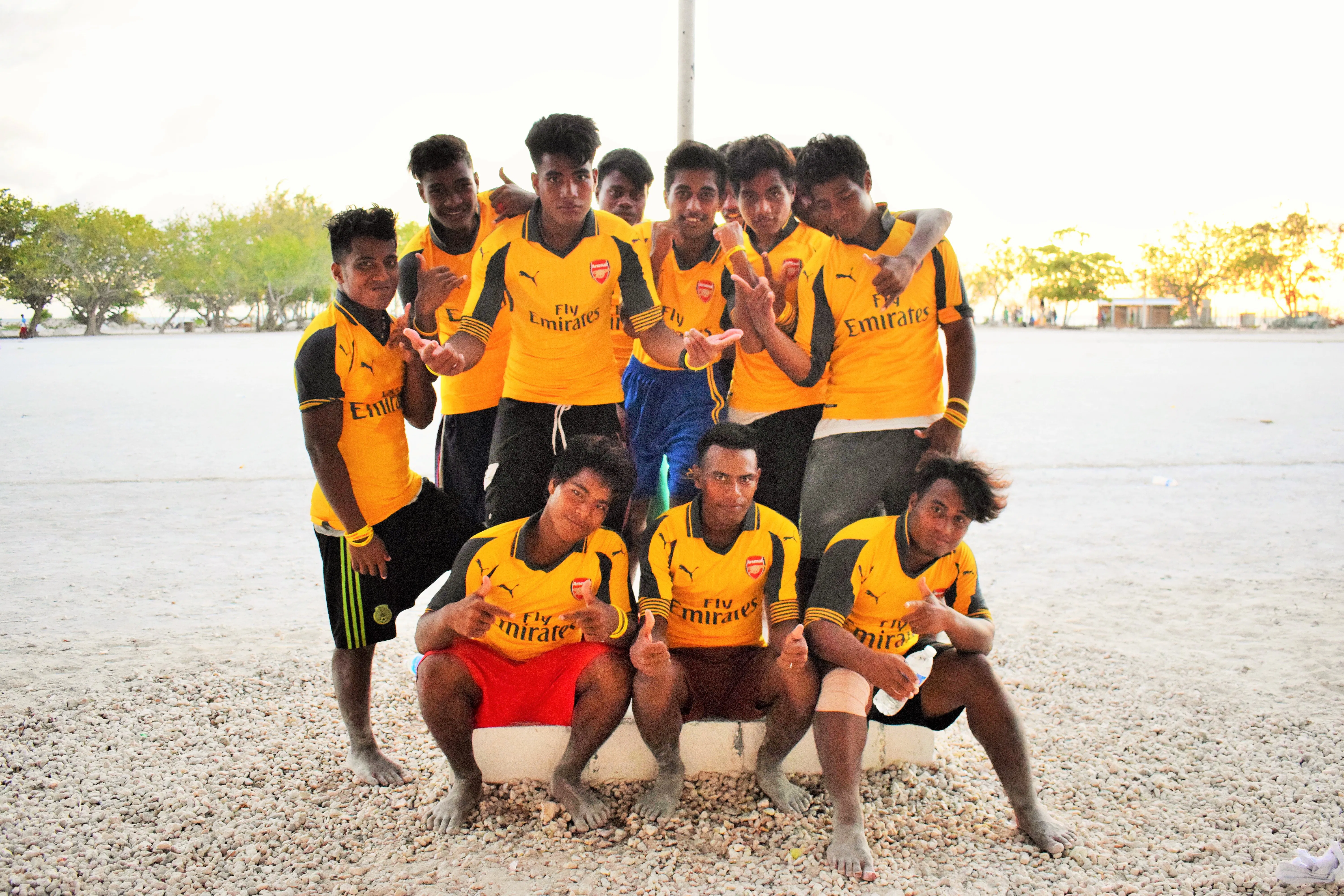 Contrast this with the nuclear disarmament research of Becky Alexis-Martin. In 2018, while working with the people of Kiritimati (Christmas Island) in the Pacific Ocean, where British nuclear tests were conducted in the 1950s – and realising the passion of the people in Kiritimati for the world game, Becky approached Arsenal Football Club, and told them about her advocacy work there. Becky said “The children of Kiritimati don't have much - but we know that children love football! In 2018, we approached Arsenal, and they very generously gave us shirts and football kit for the children for our trip to Kiritimati. We put the football kits in our suitcases and commenced the long trip half-way across the world to this tiny Pacific island, under threat from the historical impacts of nuclear weapons testing and the future consequences of climate change. We gave the children their shirts and arranged a local football match for them.”